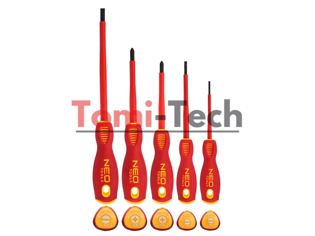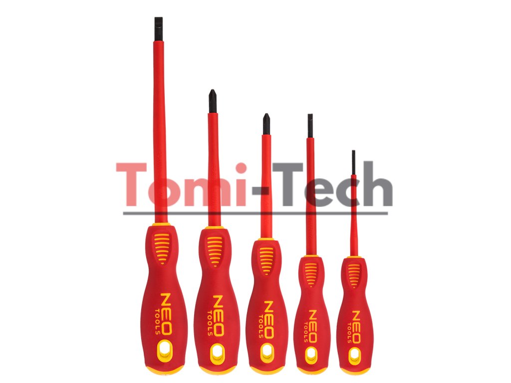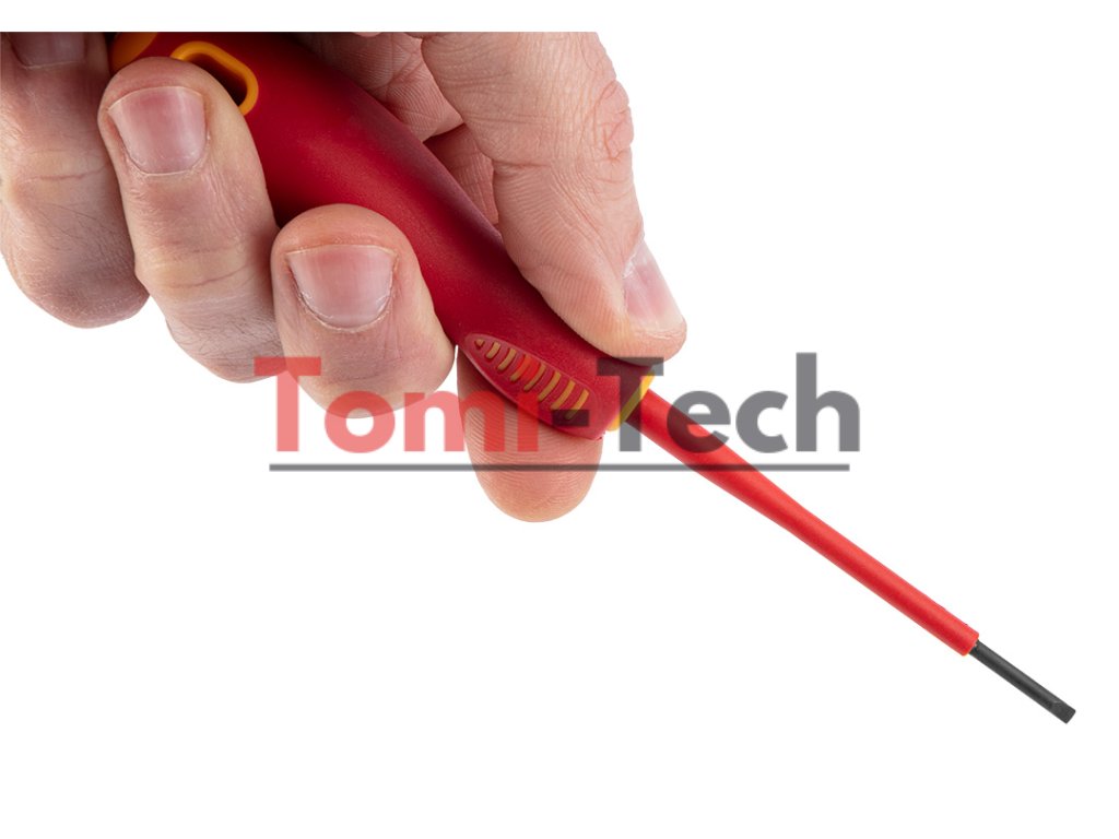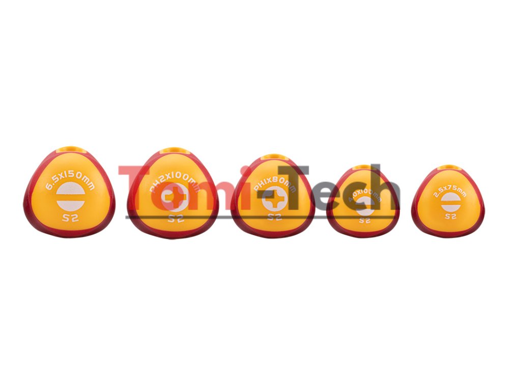 Skrutkovače 1000V, 5-dielna sada, trojuholníkový tvar rukoväte, tvarovaná opierka palca, S2, s certifikátom, rozmery: plochý 2,5 x 75 mm, 4,0 x 100 mm, 6,5 x 150 mm, krížový PH1 x 80 mm, PH2 x 100 mm, oceľ TÜVDodatočné parametre