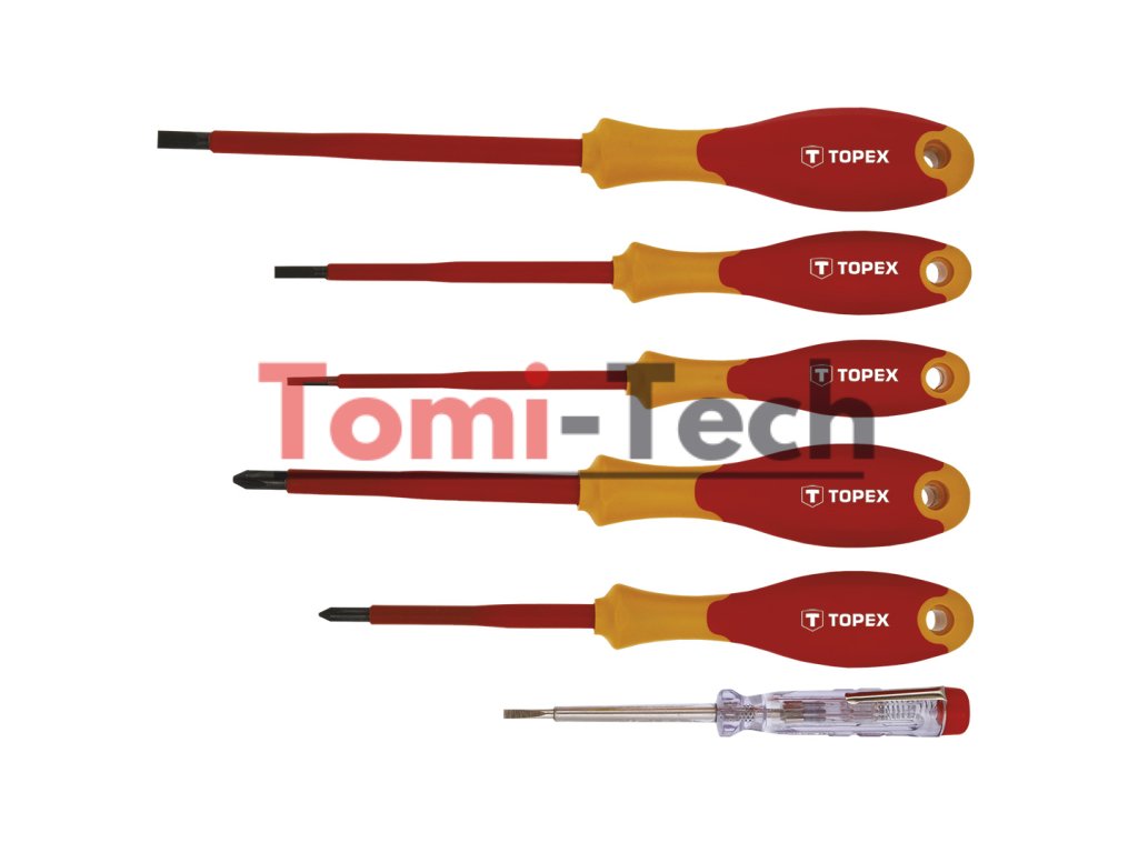 Skrutkovače 1000V, sada 6 kusov, s certifikátom, oceľ CrMo, rukoväť z dvoch materiálov, rozmery: 3 x 100 mm, 4 x 100 mm, 5,5 x 100 mm, PH1 x 80 mm, PH2 x 100 mm, tester 125 – 250 VDodatočné parametre