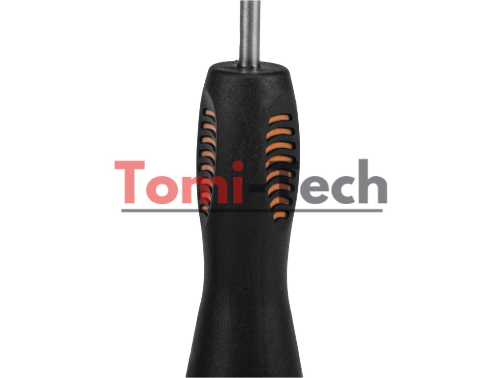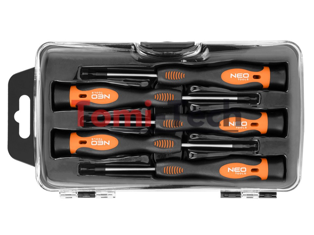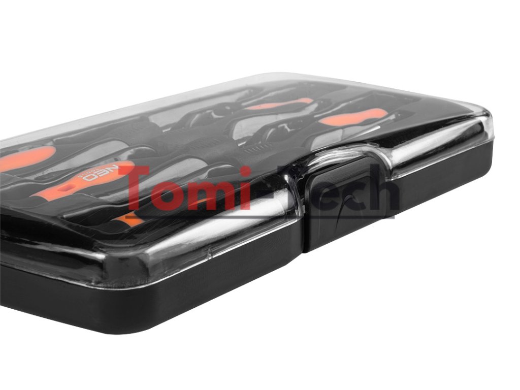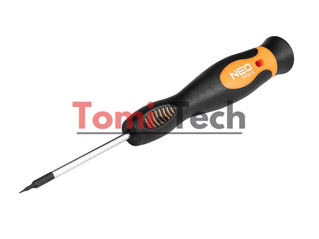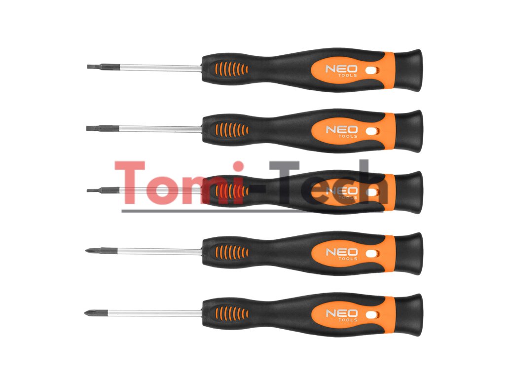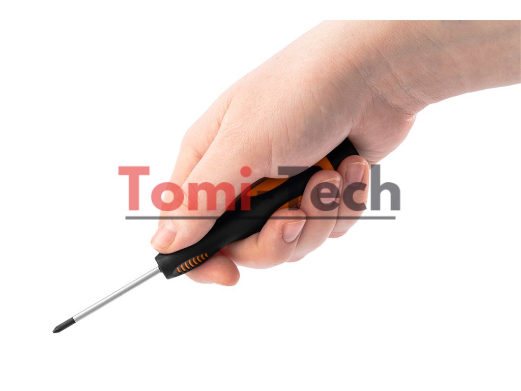 Presné skrutkovače, sada 5 kusov, oceľ S2, rozmery 1,5x50mm, 2,0x50mm, 2,5x50mm, PH00x50mm, PH0x50mm, trojuholníkový tvar rukoväte, profilovaná opierka palca, rukoväť potiahnutá TPR materiálom odolným voči chemikáliám, minerálnym olejom a tukom.Dodatočné parametre