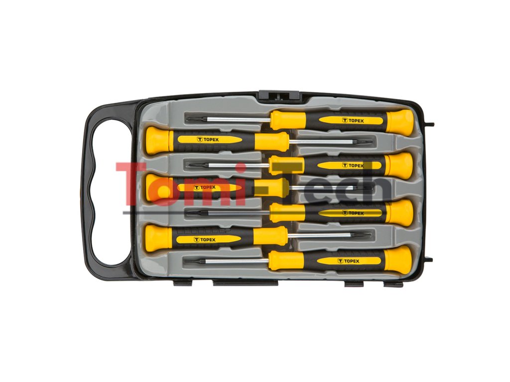 Presné skrutkovače, sada 7 kusov, rozmery: 1,5 x 50 mm, 2 x 50 mm, 2,5 x 50 mm, PH000 x 50 mm, PH0 x 50 mm, T5 x 50 mm, T6 x 50 mm, oceľ CrV, rukoväť z dvoch materiálovDodatočné parametre