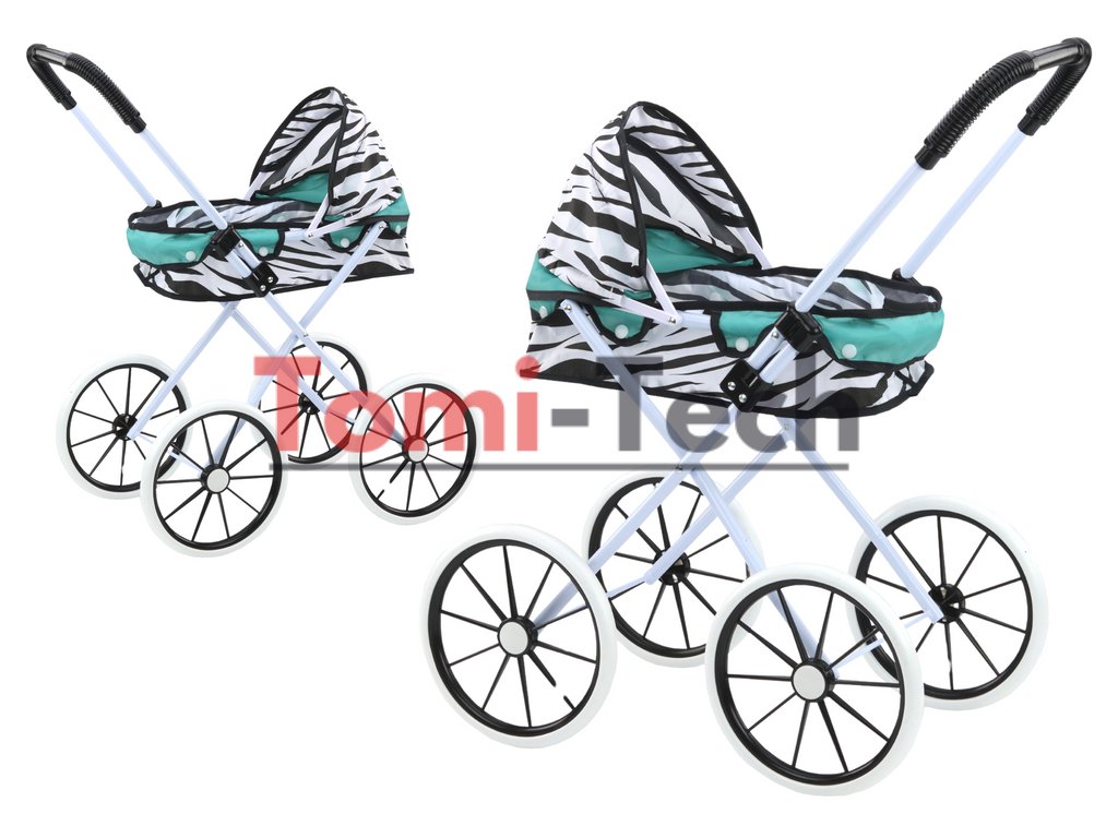 Skladací kočík pre bábiky s veľkými kolesami, zebra tyrkysová