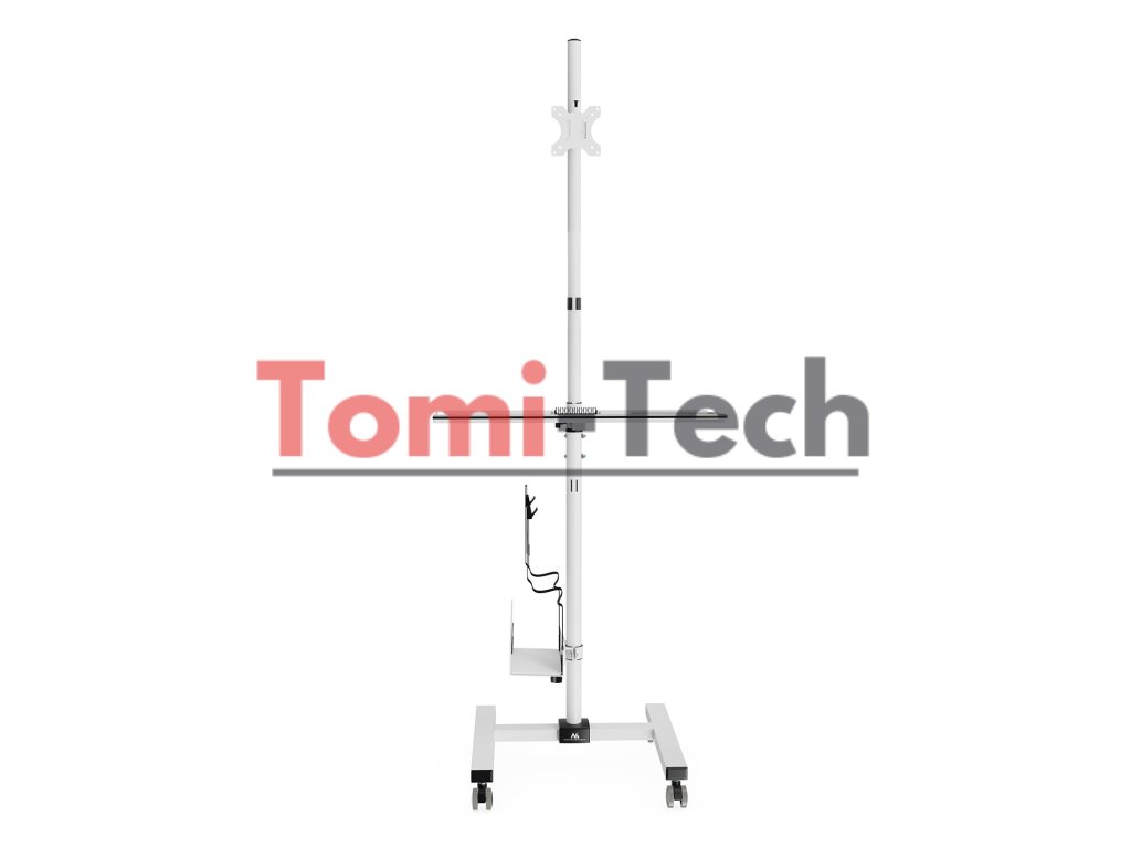 Maclean MC-793 je profesionálny vozík na monitor a počítač, ktorý umožňuje mobilitu vašej počítačovej pracovnej stanice. Je vybavený nastaviteľným držiakom monitora, poličkou na myš a klávesnicu a držiakom na počítač, čo zaisťuje ergonomické a pohodlné používanie. Stojan je kompatibilný s monitormi od 17 do 32 palcov a maximálnou hmotnosťou 8 kg.