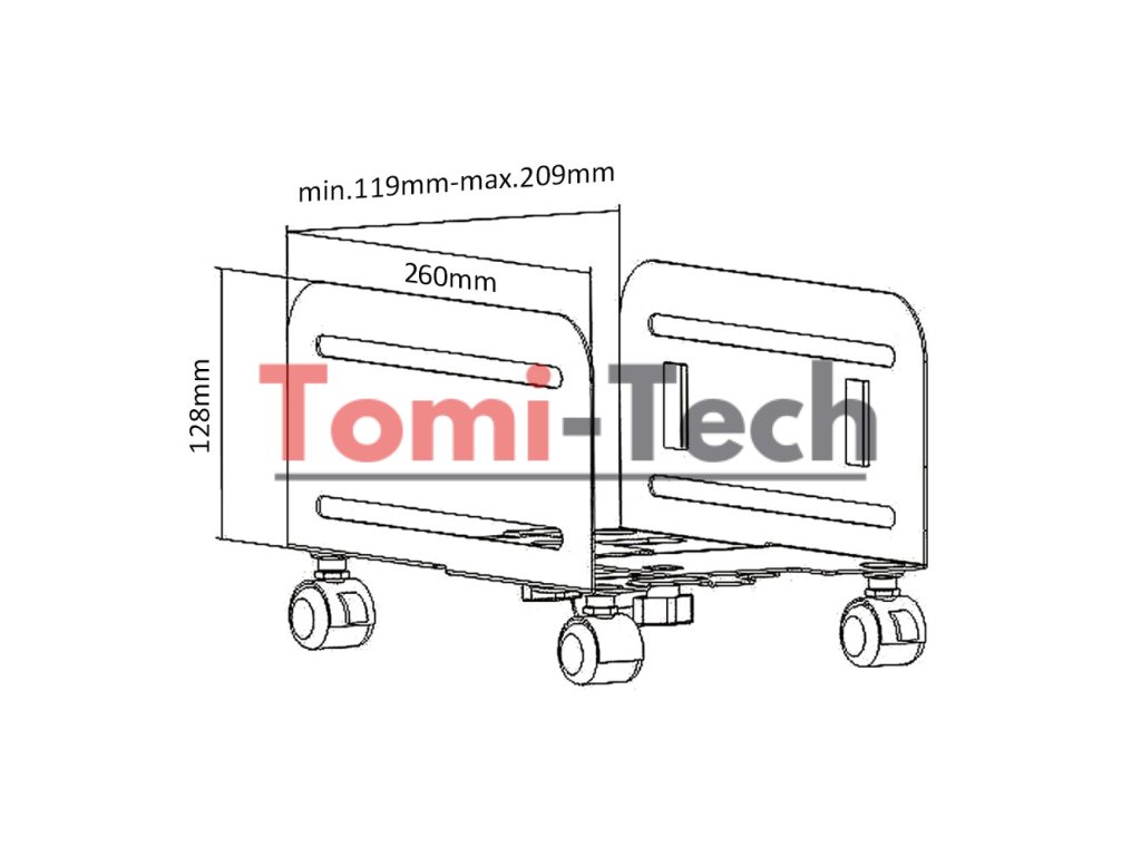 Vďaka rozsahu nastavenia šírky od 119 mm do 209 mm je možné vozík prispôsobiť väčšine počítačov.