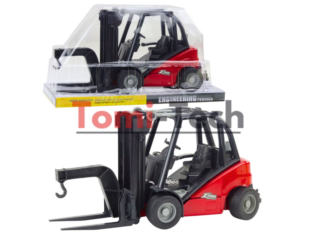 Vysokozdvižný vozík je mimoriadne realistická hračka, ktorá dokonale reprodukuje vzhľad skutočného vozidla používaného v skladoch a na stavbách. Vďaka svojej pevnej konštrukcii a atraktívnemu červeno-čiernemu dizajnu vysokozdvižný vozík priťahuje pozornosť a zaručuje dlhotrvajúcu zábavu. Jeho najväčšou výhodou sú pohyblivé vidlice, ktoré umožňujú zdvíhať a spúšťať bremená, vďaka čomu je hra ešte pútavejšia a kreatívnejšia.
