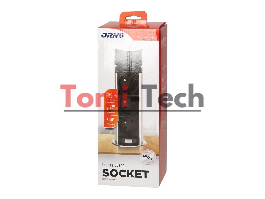 Zapustená nábytková zásuvka Ø6cm s USB nabíjačkou a 1,5m káblom, 3x2P+Z, 2xUSB (typ A a typ C), INOXDodatočné parametre