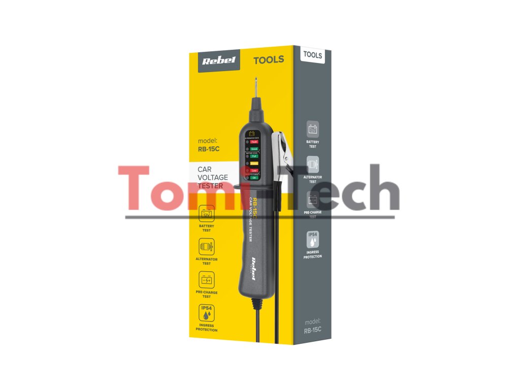 Indikátor napätia REBEL RB-15C je praktický diagnostický nástroj, ideálny na kontrolu stavu alternátorov a batérií vo vozidlách s 12V systémami. Kompaktný a ľahký indikátor poskytuje presné údaje a ľahko sa používa, vďaka čomu je nevyhnutný v dielňach a pre individuálnych používateľov, ktorým záleží na správnej prevádzke elektrického systému ich vozidla.