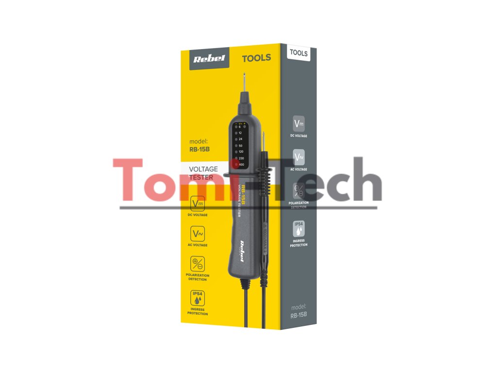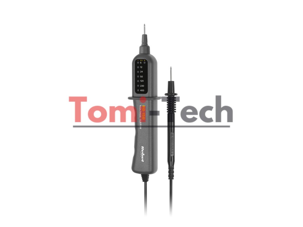 Indikátor napätia REBEL RB-15B umožňuje merať striedavé napätie prúd (AC) a jednosmerný prúd (DC) v rozsahu 6 V až 400 V. Zariadenie automaticky nastavuje rozsah merania, čo zjednodušuje prácu a eliminuje potrebu manuálneho nastavenia rozsahu. Funkcia detekcie polarity jednosmerného napätia ďalej zvyšuje presnosť merania, čo umožňuje rýchlu a presnú detekciu polarity v testovaných obvodoch.