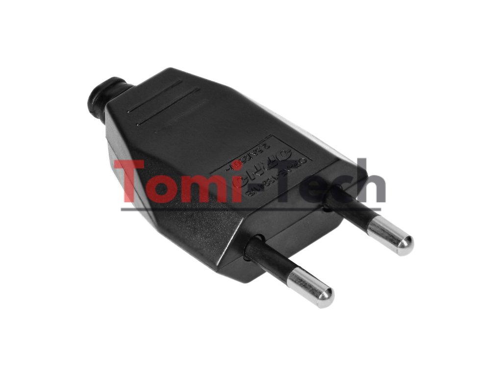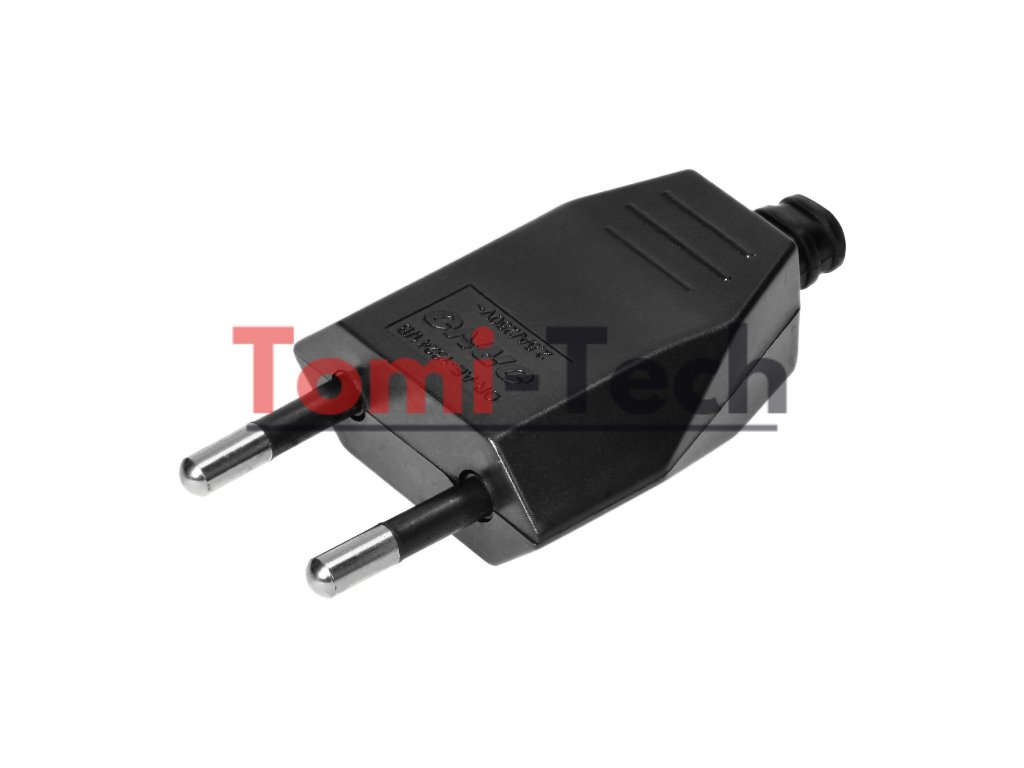Plochá zástrčka bez uzemnenia, 2,5 A, 250 V, čierny polykarbonát, 50 kusovDodatočné parametre