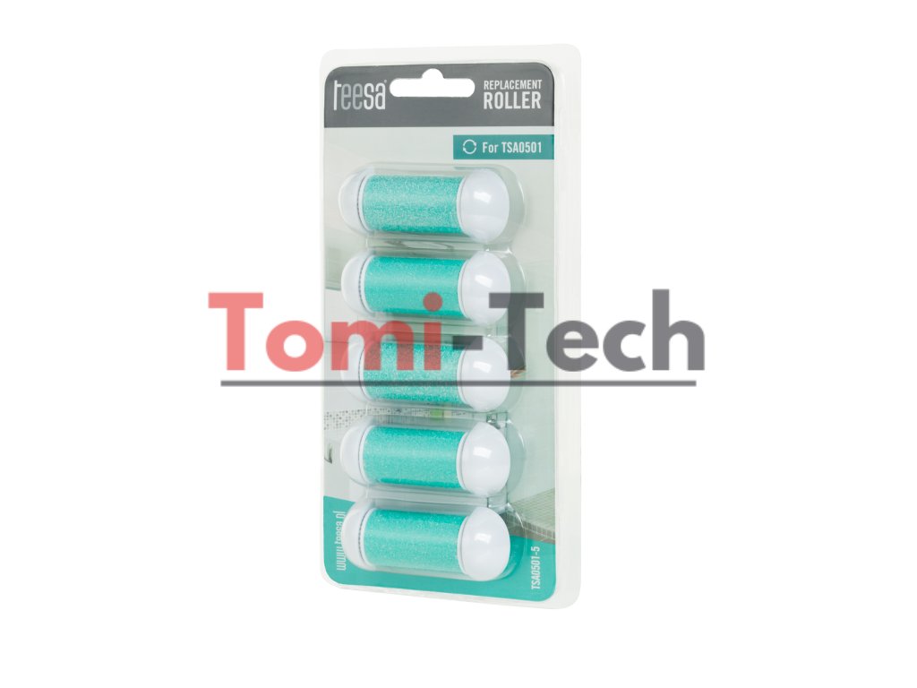 Sada 5 náhradných hlavíc pre elektrický pilník na chodidlá Teesa TSA0501 vám umožní správne sa starať o vaše chodidlá v pohodlí domova. Vďaka tomu si váš pilník zachová svoju pôvodnú účinnosť. Špeciálny kamenný povlak zaisťuje, že každý pilníkový valček Teesa dôkladne odstráni mozole z vašich pät a chodidiel.