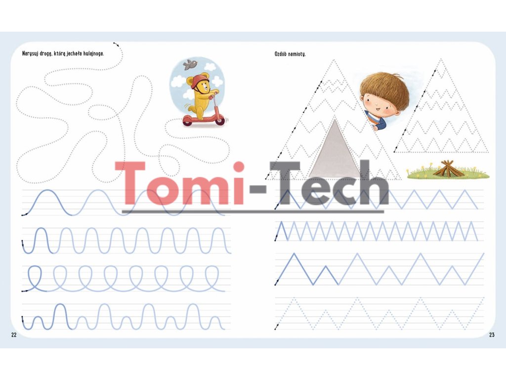 Zábava a učenie v jednom! Kreatívny zošit pre staršie deti, ktorý im pomáha pripraviť sa na učenie sa písania. Zošit obsahuje rozcvičku na rozvoj jemnej a hrubej motoriky, ako aj cvičenia na podporu pohybov rúk.