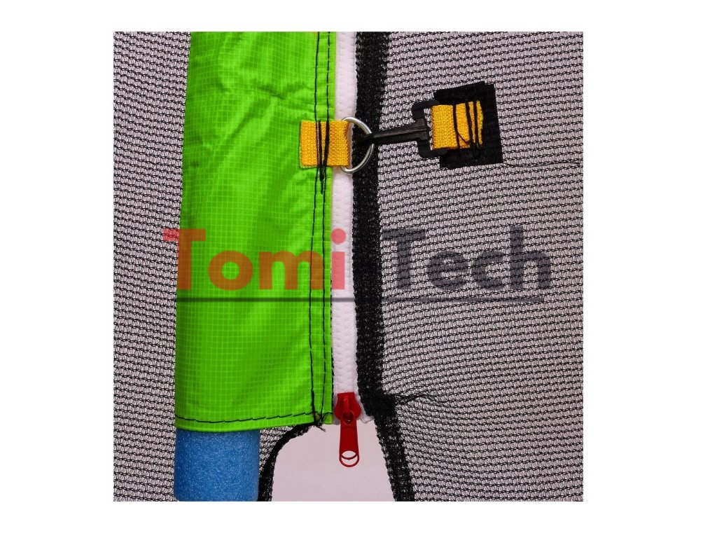 • Trampolínová podložka je napnutá 48 pozinkovanými pružinami s dĺžkou 13 cm, ktoré sú pokryté ochranným golierom,