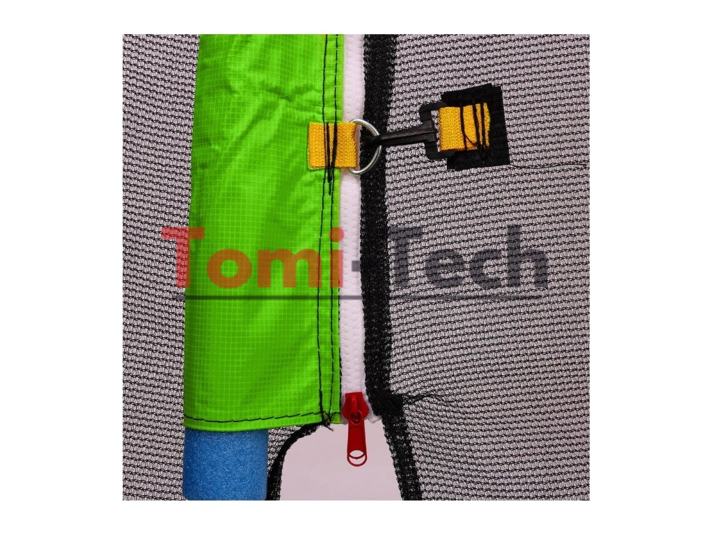 - Trampolínová podložka je napnutá 108 pozinkovanými pružinami s dĺžkou 19 cm, ktoré sú pokryté ochranným golierom,