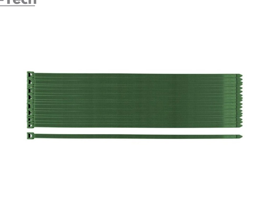Záhradné úväzy 7,6 x 380 mm, 50 ks, zelené 15-971 od NEO TOOLS sú úväzy pre každého, kto má doma alebo v záhrade rastliny, a sú nevyhnutné na upevňovanie, štepenie, pripevňovanie a viazanie stoniek alebo konárov k sebe. Väzby sú vyrobené z nylonu PA6, ktorý je schopný udržať až 50 kg. Vyznačujú sa rozmermi 7,6 x 380 mm a zelenou farbou. Balenie obsahuje 50 svoriek NEO TOOLS.