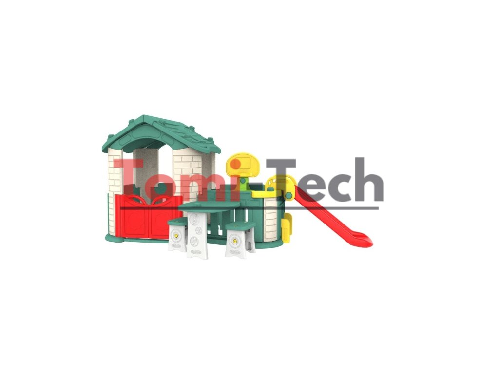 Záhradný domček so šmykľavkou 5v1 - zelený