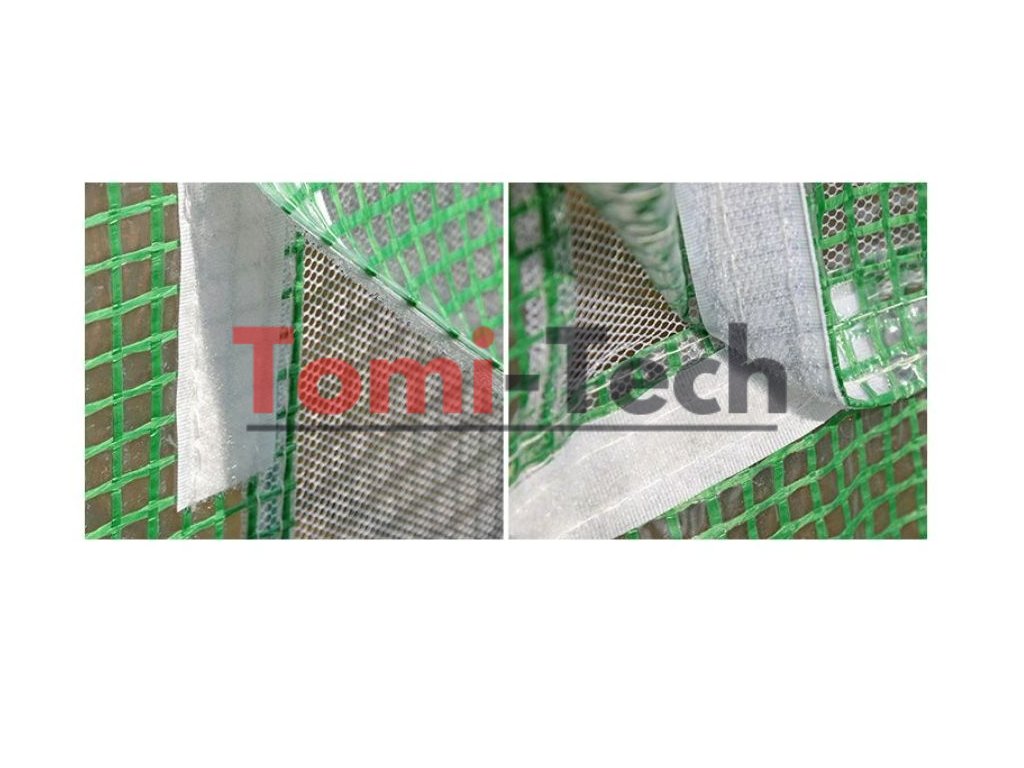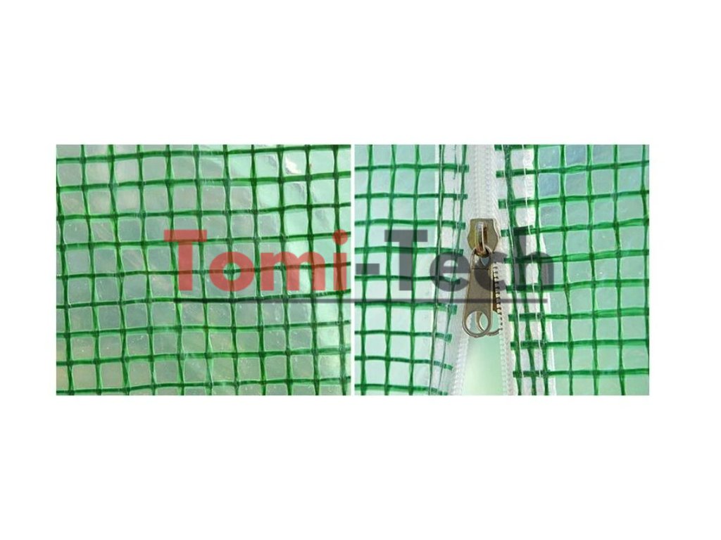 - Kvalitná fólia na fóliovník (agrofólia) z PE materiálu 140g/m2 (polyetylén - materiál s vysokou odolnosťou voči oderu a opotrebeniu) s výstužou zo sieťoviny PP (polypropylén) vybavená UV filtrom