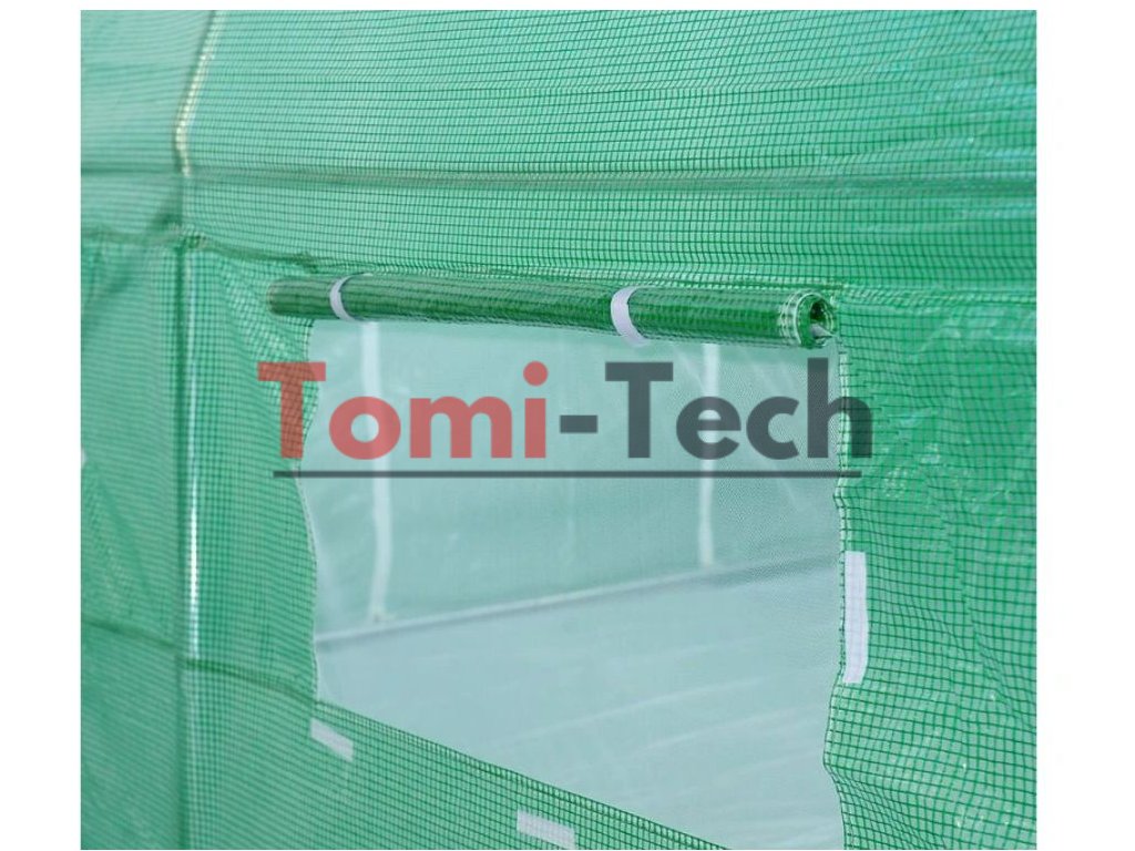 Fóliovník má priedušné a rolovacie okná, ktoré zaisťujú dobrú cirkuláciu vzduchu a vytvárajú optimálnu mikroklímu pre pestovanie akýchkoľvek rastlín. Integrované okno sieťky zabraňuje vniknutiu hmyzu a vtákov do skleníka.