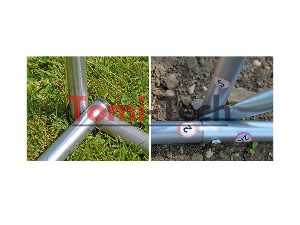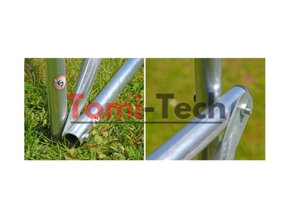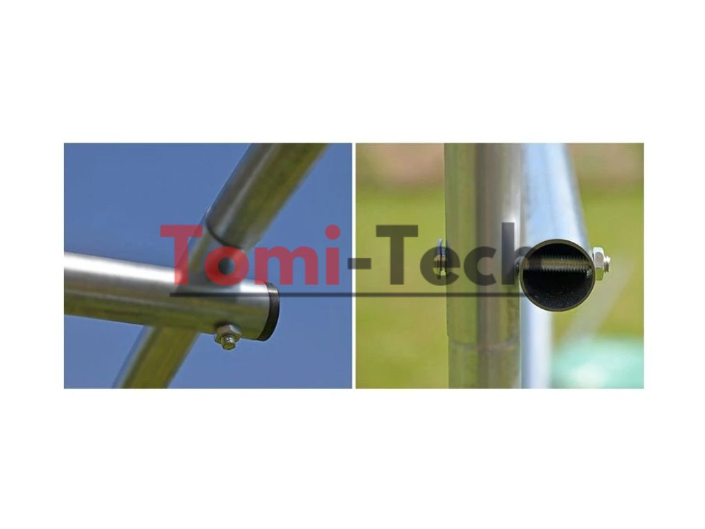 Konštrukcia fóliovníka je pozinkovaná oceľová konštrukcia, ktorá má najstabilnejší profil rúry. Hrúbka 0,7mm a priemer 24mm.