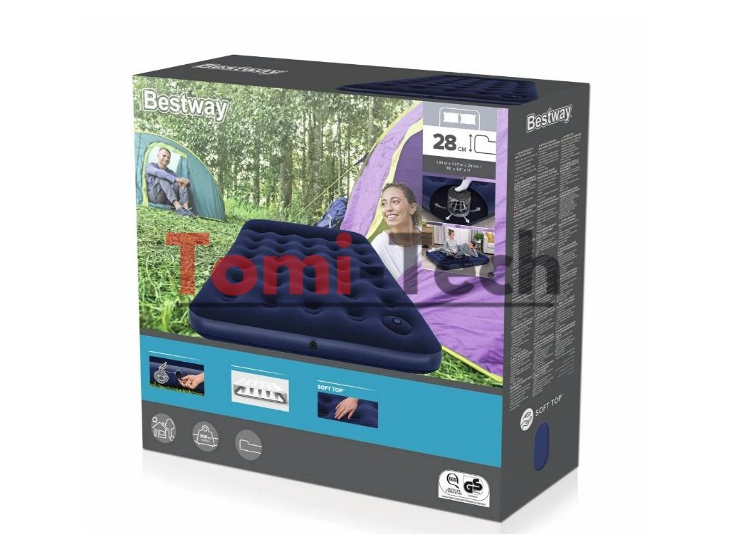 Zamatový matrac Double Bestway s rozmermi 191 x 137 x 28 cm je určený na dvojmiestne použitie, na vnútorné aj vonkajšie použitie. Je to stredne veľký matrac z rodiny matracov Bestway s integrovanou nožnou pumpou.Vyrobený z pevného PVC materiálu, na vrchu je pokrytý príjemným velúrovým materiálom. Keď prenosné lôžko v danej chvíli nebude potrebné, stačí pomocou rýchlovypúšťacieho ventilu vyprázdniť matrac, potom ho zložiť a schovať do skrine. Vďaka zabudovanej nožnej pumpe je ideálny pod stanom a na kempovanie, takže si nemusíte brať samostatnú pumpu alebo sa obávať napájania elektrickej pumpy.