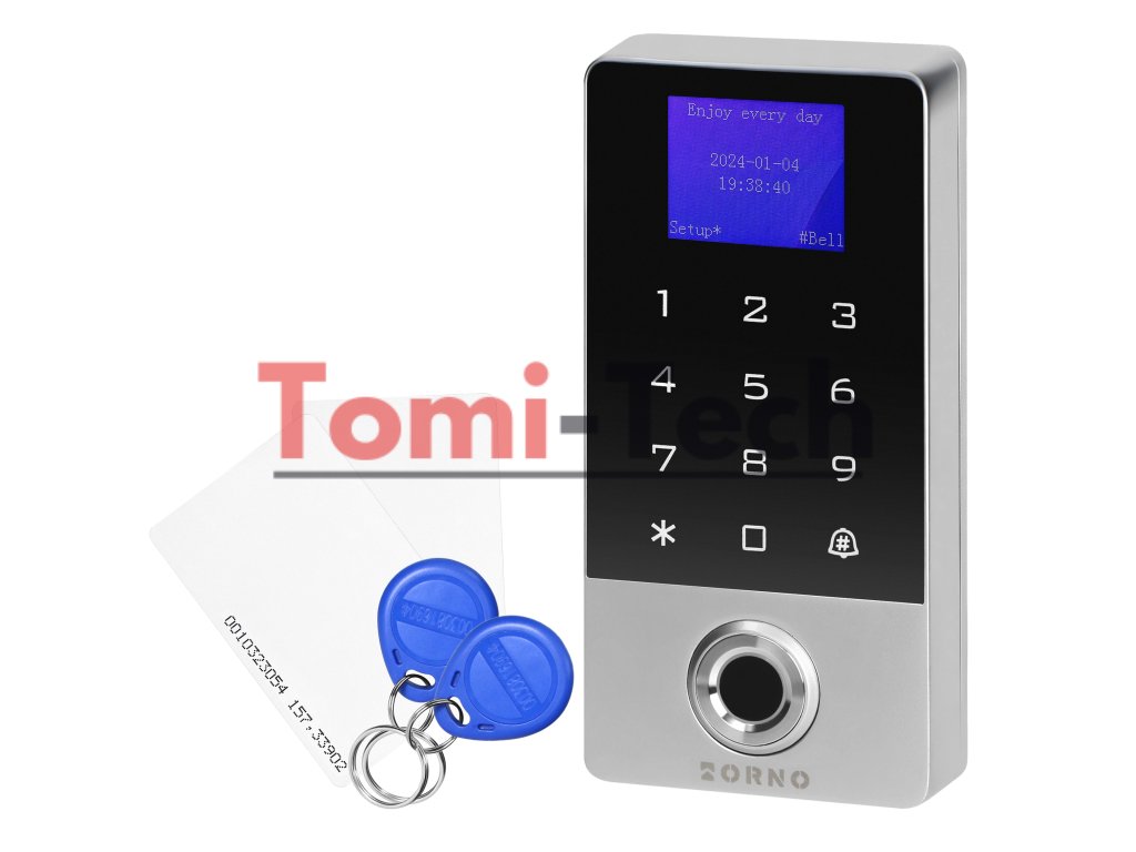 Dotykový kódový zámok s čítačkou bezdotykových kariet a kľúčeniek a čítačkou odtlačkov prstov, Wi-Fi, IP68, 1 relé 3A, napájaný technológiou Tuya
