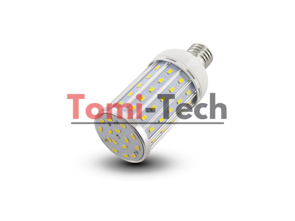 25W Corn LED žiarovka je energeticky úsporným ekvivalentom tradičnej 250W žiarovky E27. Je veľmi silná a účinná, poskytuje až 2525 lúmenov a svetelná účinnosť je až 105 lm/W. Vybavená modernými SMD 2835 Epistar diódami. Žiarovka poskytuje maximálny uhol vyžarovania až 360°. Hliníkové puzdro veľmi dobre odvádza teplo, takže diódy sa neprehrievajú a vydržia dlhšie. Životnosť je až 50 000 hodín. Žiarovka vydáva veľmi rovnomerné svetlo a svieti na plný výkon od okamihu zapnutia bez blikania. Vďaka kovovému puzdru je veľmi odolná a odolná voči poškodeniu. Výkon: 25W. Typ závitu: E27. Svetelný tok: 2525 lm. Farba svetla: studená 6000K. />Účinnosť: 105 lm/WUhol vyžarovania: 360°