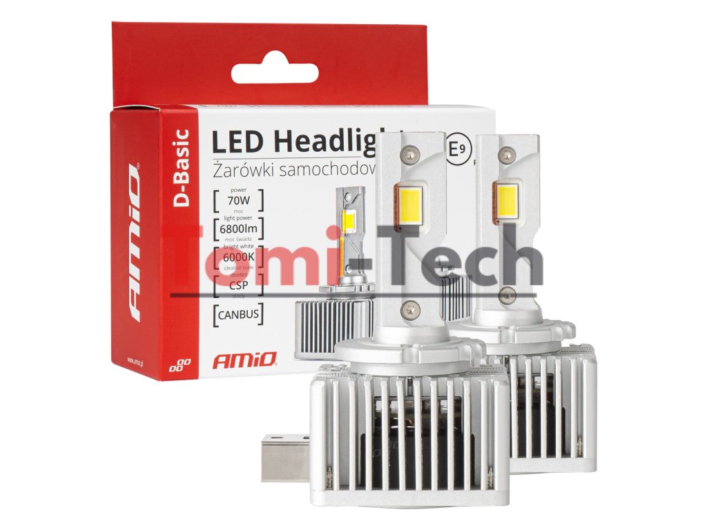 AMiO D-BASIC SERIES LED NÁHRADY ZA TRADIČNÉ XENÓNOVÉ ŽIAROVKY D3S/D8S/D3R (rovnaká montáž) Sada veľmi výkonných LED žiaroviek, náhrada za tradičné XENÓNOVÉ žiarovky Nie je potrebné odstraňovať predradník ani upravovať inštaláciu, stačí pripojiť ako tradičnú žiarovku 6000K - studená biela - xenónová biela 6800LM 70W sada Materiály použité pri konštrukcii produktu sú hliník a meď Aktívne chladenie Žiadna chyba VYPÁLENEJ ŽIAROVKY, vybavená CANBUS Žiadne rušenie a šum FM RÁDIA a CB RÁDIA Dlhá životnosť Perfektné uchytenie - rozmery ako pri tradičných žiarovkách Bod zaostrenia je úplne rovnaký ako pri tradičných žiarovkách Kompatibilné s XENÓNOVÝMI päticami: D3S a D8S Xenónové LED žiarovky neprepaľujú reflektory ako pri tradičných výbojkách, kvôli absencii IR a UV emisií Výhody LED vlákna Väčšia koncentrácia svetla Dlhšia životnosť LED diód v porovnaní s xenónovými žiarovkami Skvelý svetelný výkon Perfektná medzná hranica (platí pre šošovkové svetlomety) Doba zapnutia - 0,01 s Vysoká odolnosť častému zapínaniu a vypínaniu Vyššia odolnosť voči vibráciám Žiadna zmena farby, efekt zapálenia ako pri xenónových filamentoch Žiadne záblesky pri zapnutí zapaľovania Žiadne UV žiarenie Žiadne IR žiarenie Cena za sadu 2 kusov.Dodatočné parametre