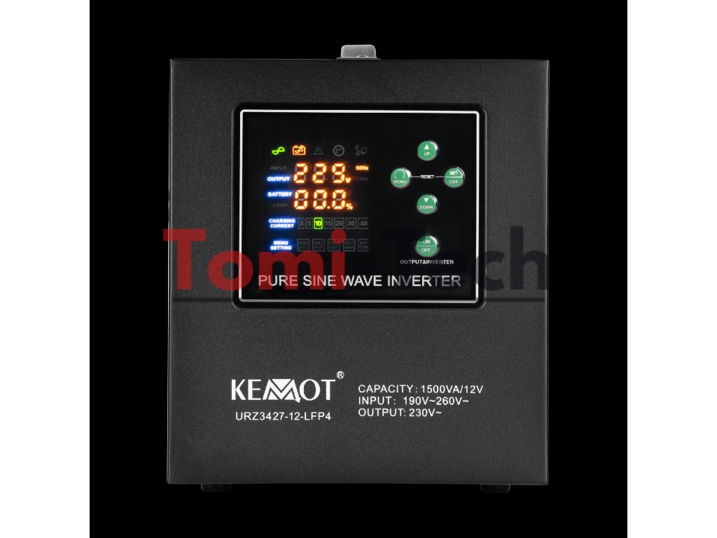 Núdzový zdroj KEMOT PROsinus-1500-LFP4, menič čistej sínusovej vlny s funkciou nabíjania 12V 230V 1500VA/1050W