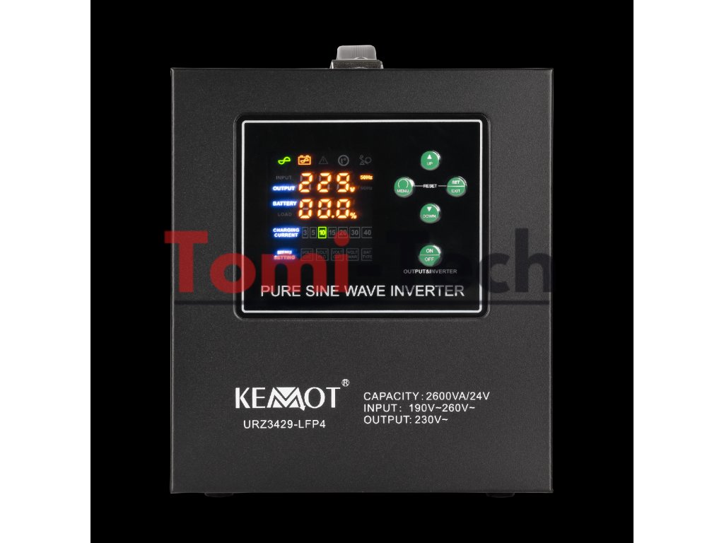 Núdzový zdroj KEMOT PROsinus-2600/24-LFP4, menič čistej sínusovej vlny s funkciou nabíjania 24V 230V 2600VA/1800W