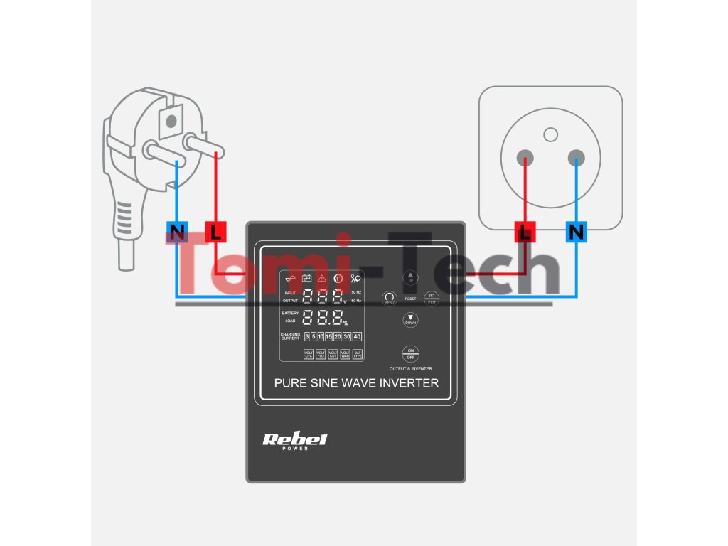 Rebel POWER-1000-LFP4 UPS - menič čistej sínusovej vlny s funkciou nabíjania 12V 230V 1000VA/700W