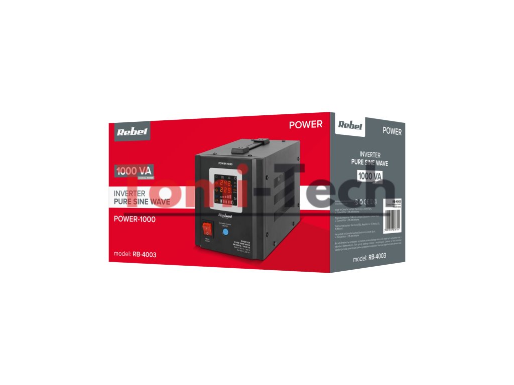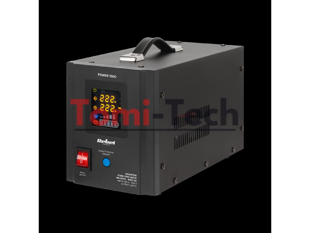 Neprerušiteľný zdroj napájania Rebel POWER-1000 - menič čistej sínusovej vlny s funkciou nabíjania 12V 230V 1000VA/700W