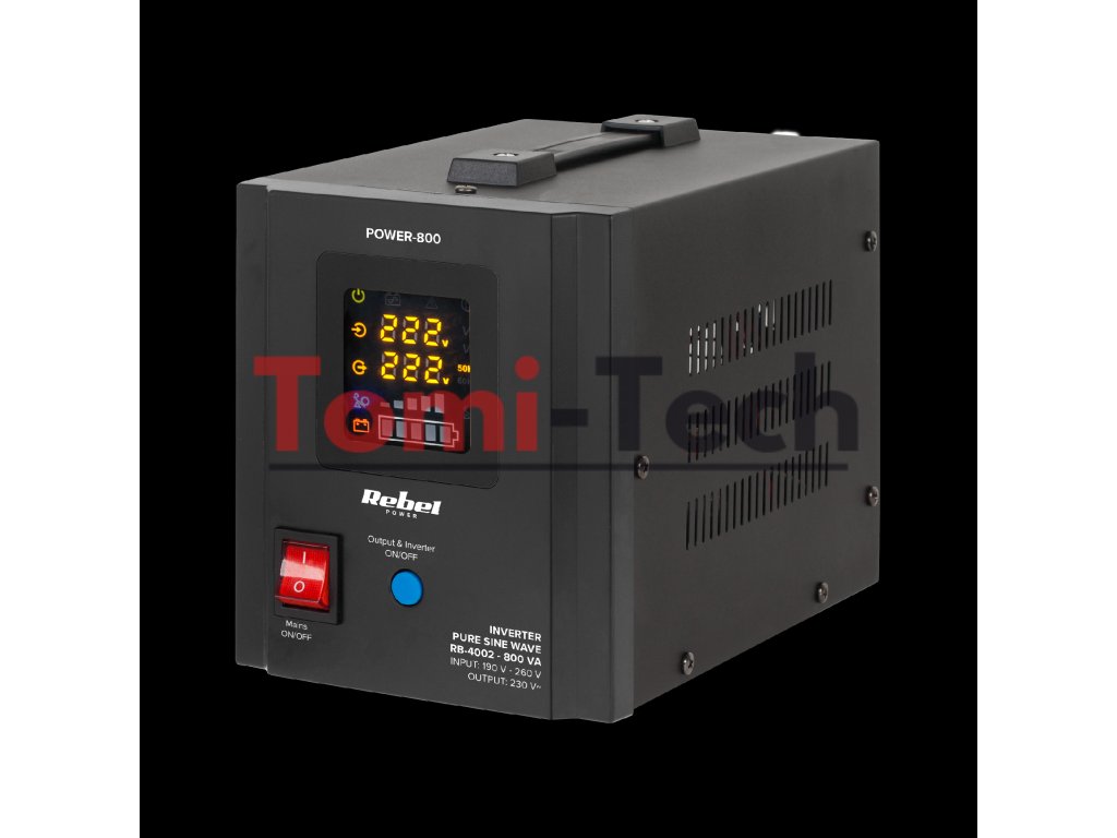 Núdzový zdroj Rebel POWER-800 - menič čistej sínusovej vlny s funkciou nabíjania 12V 230V 800VA/500W