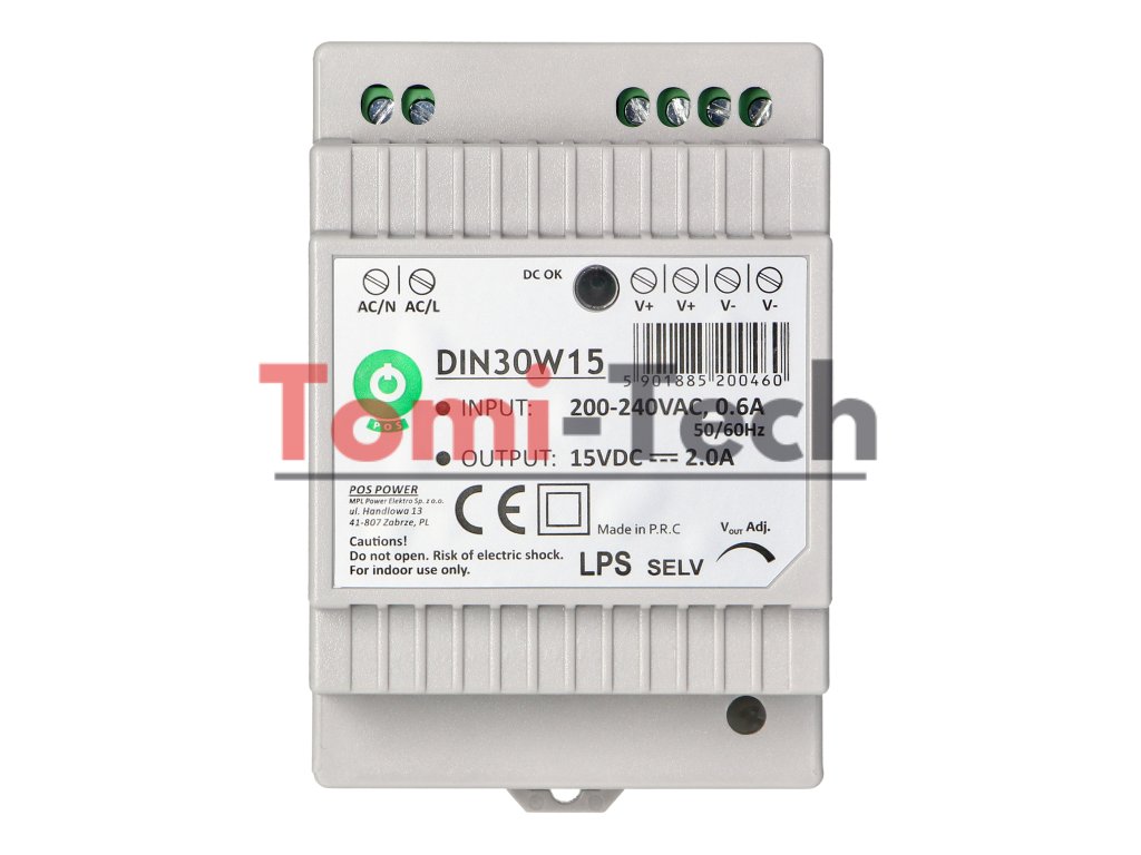 Napájací zdroj na DIN lištu, 15 V DC, 2,0 A