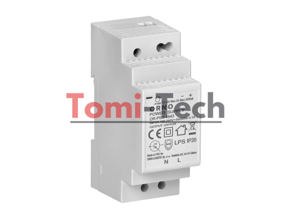 Napájací zdroj na DIN lištu 12VDC, 2A, 24W, šírka 2 moduly