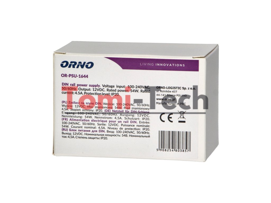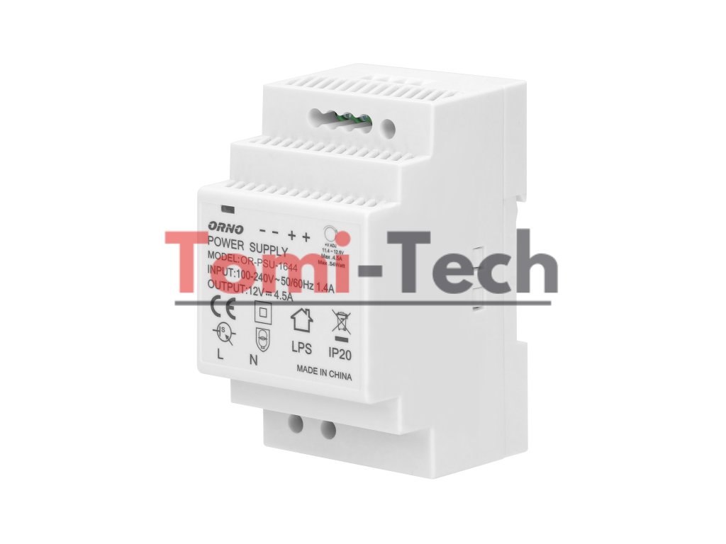 Vysokovýkonný a stabilný napájací zdroj s výstupným výkonom 54 W a výstupným napätím 12 V DC. Výstupné napätie je nastaviteľné. Napájací zdroj je určený na montáž na DIN lištu a má širokú škálu aplikácií vrátane priemyselných aplikácií a nízkonapäťových inštalácií, ako sú CCTV a poplašné systémy. Napájací zdroj je vybavený ochranou proti preťaženiu, skratu a prepätiu. LED dióda indikuje zapnutie.Dodatočné parametre