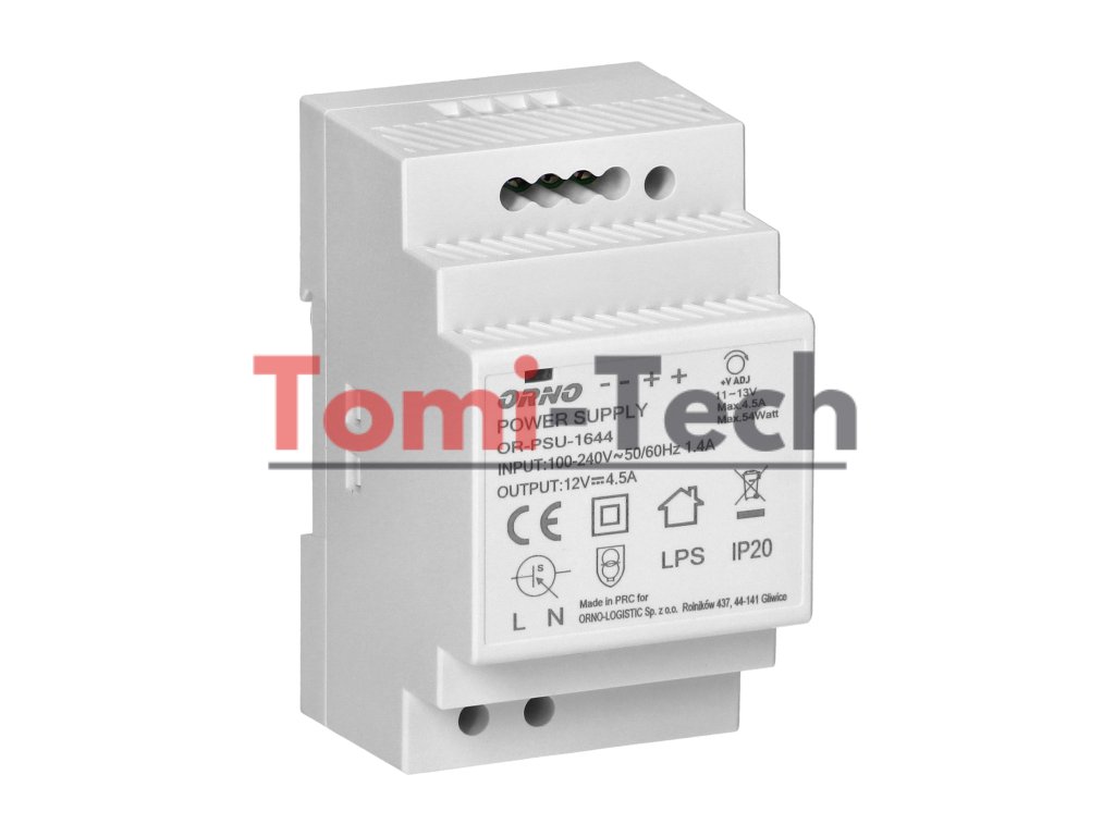 Napájací zdroj na DIN lištu 12VDC, 4,5A, 54W, šírka 3 modulov
