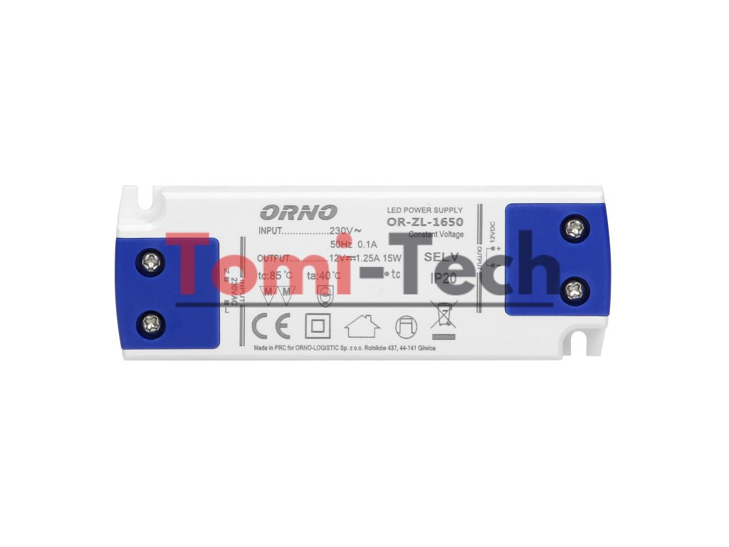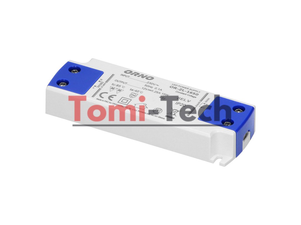 Tento plochý napájací zdroj ponúka napätie 12 V DC a maximálne zaťaženie 15 W. Je určený na napájanie LED osvetlenia v suchom prostredí. Kryt je vyrobený z plastu. Napájací zdroj má vstupné a výstupné svorky. Predáva sa bez káblov. Jeho výška je 16,5 mm.Dodatočné parametre