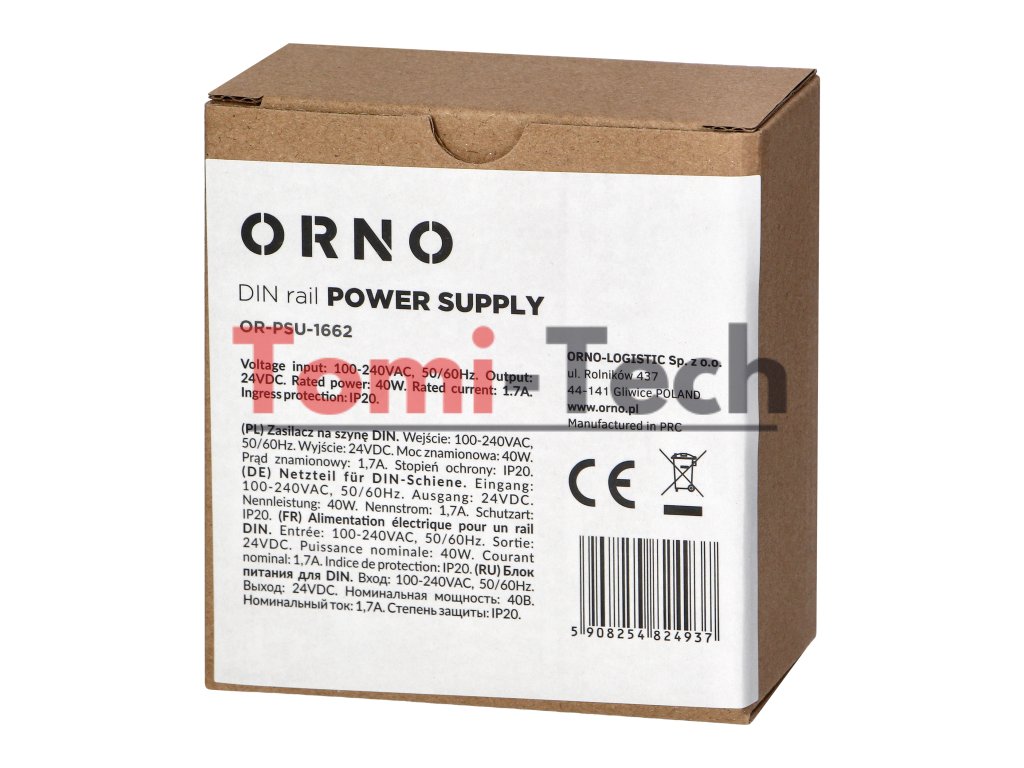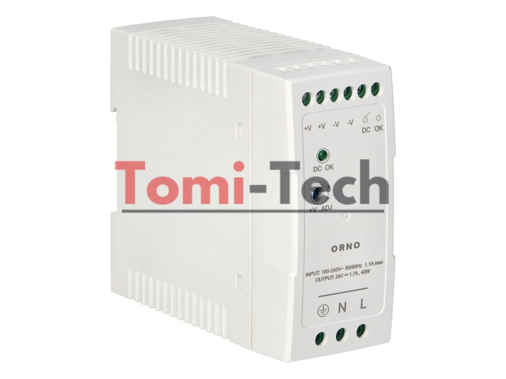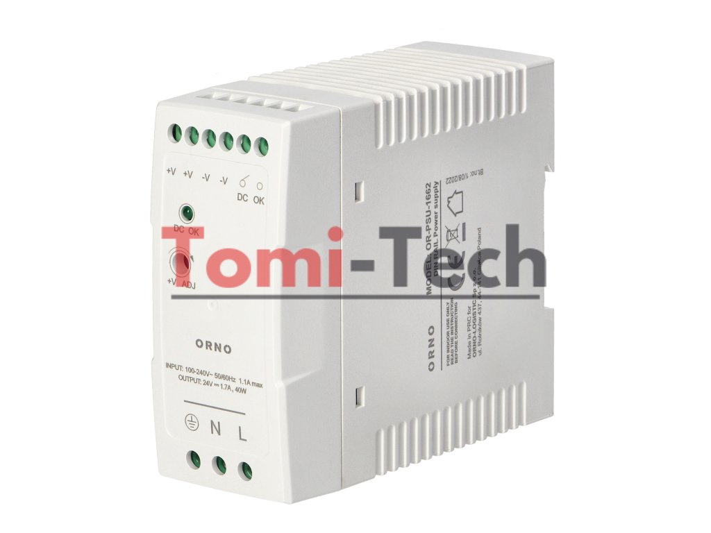Priemyselný napájací zdroj, DIN lišta, 24VDC, 1,7A, 40W, v plastovom puzdre