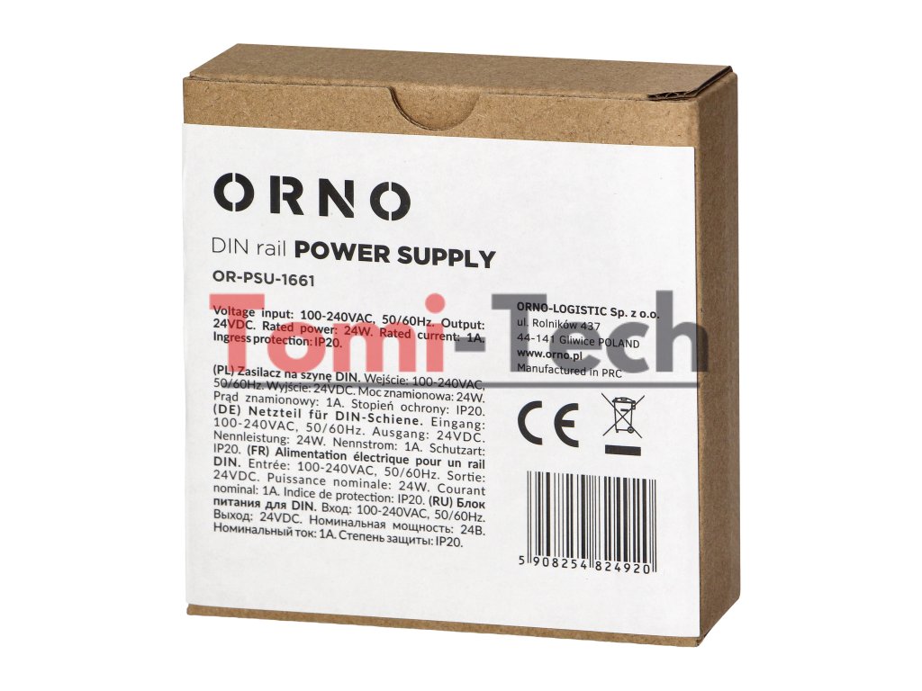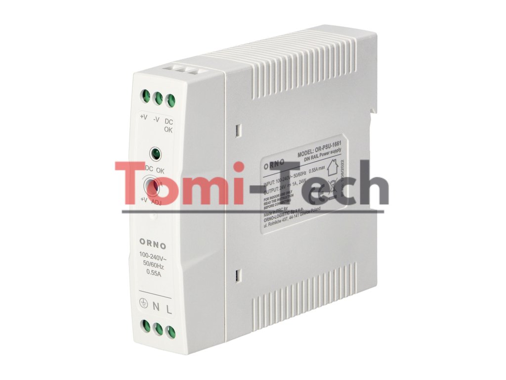 Priemyselný napájací zdroj, DIN lišta, 24VDC, 1A, 20W, v plastovom puzdre