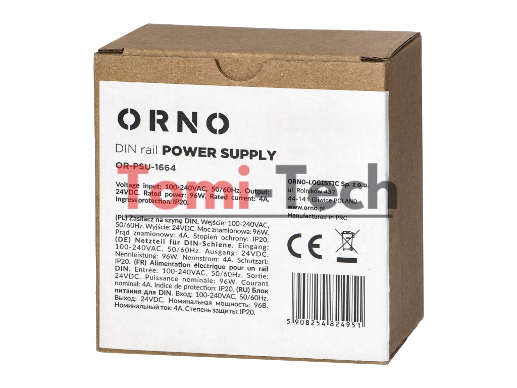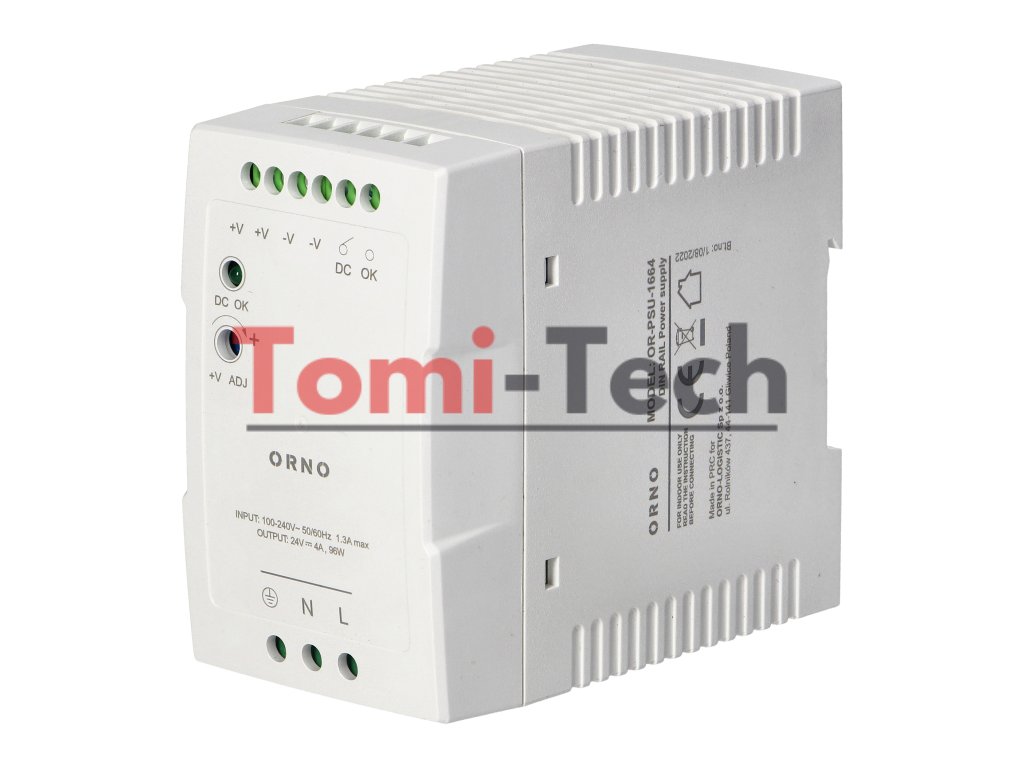Priemyselný napájací zdroj, DIN lišta, 24VDC, 4A, 96W, v plastovom puzdre