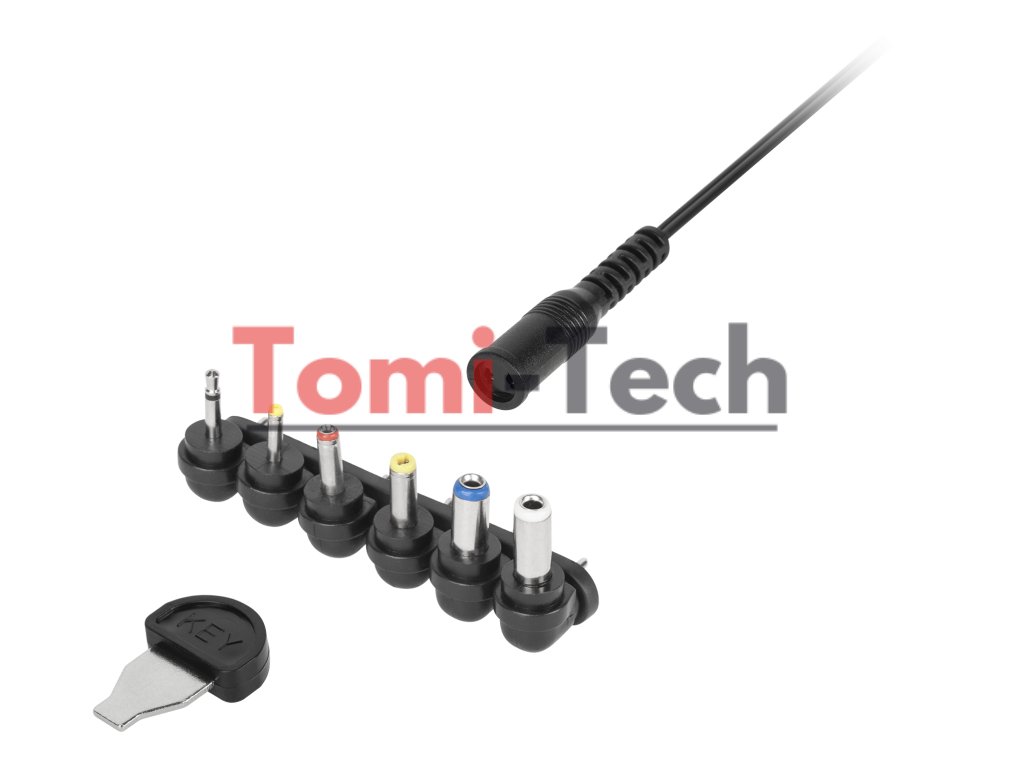 Napájací zdroj Kemot je vybavený šiestimi univerzálnymi zástrčkami rôznych veľkostí: 3,5x1,35 mm, 5,5x2,1 mm, 5,5x2,5 mm, 2,35x0,7 mm, 4,0x1,7 mm a 2,5 mono. To umožňuje pripojenie k širokej škále zariadení, ako sú routery, modemy, prehrávače médií a mnoho ďalších, vďaka čomu je napájací zdroj mimoriadne praktickým riešením pre každodenné použitie.