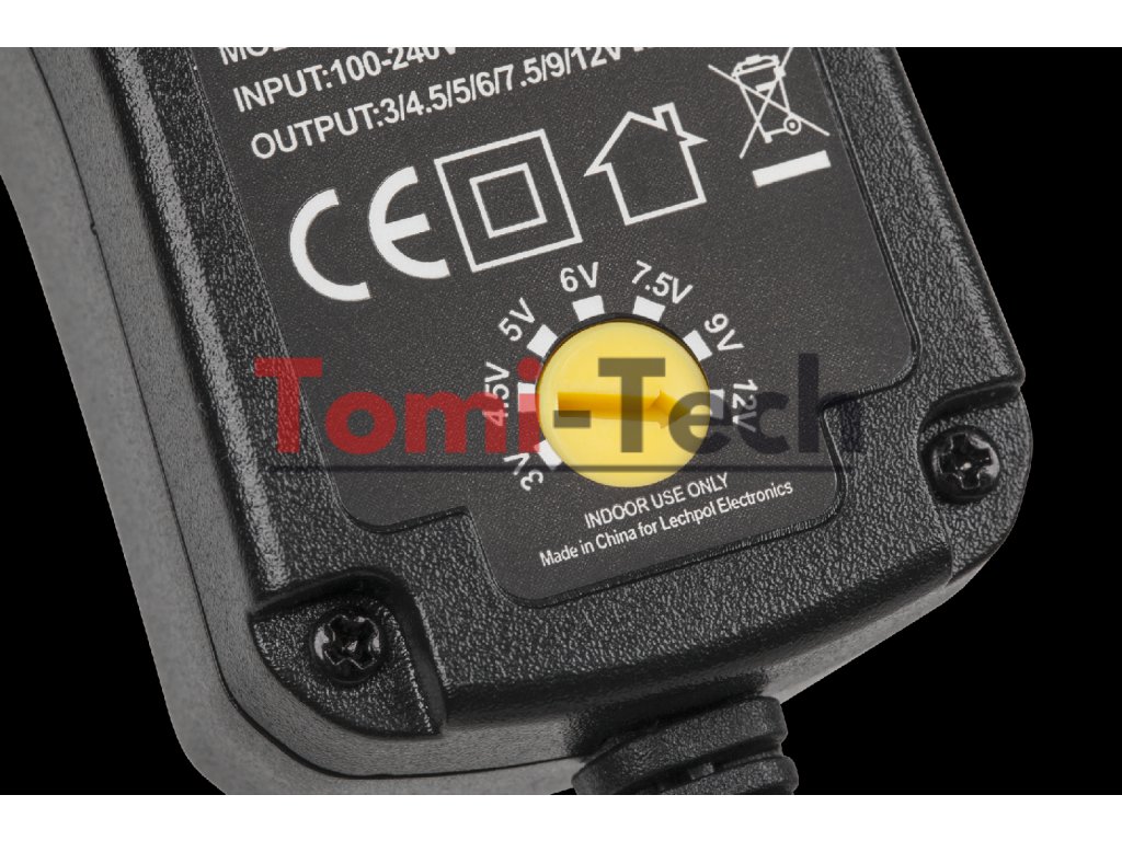 Zdroj, ktorý Kemot ponúka sedem úrovní výstupného napätia: 3 V, 4,5 V, 5 V, 6 V, 7,5 V, 9 V a 12 V DC. Táto funkcia umožňuje nastaviť napätie podľa špecifických požiadaviek napájaného zariadenia, čím sa zabezpečí jeho správna prevádzka a chráni pred poškodením v dôsledku nesprávneho napájania.