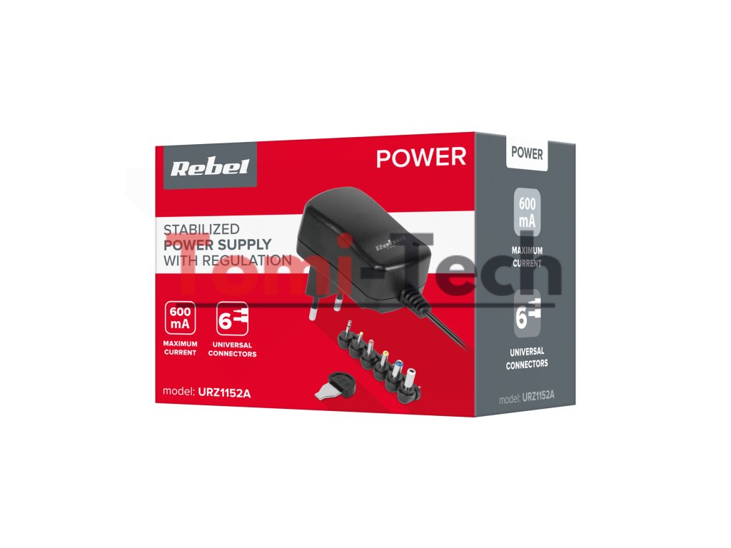 Vďaka šiestim univerzálnym zástrčkám je napájací zdroj Rebel 12V 600mA kompatibilný so širokou škálou zariadení, ako sú routery, prehrávače médií, fotoaparáty, malé domáce spotrebiče a mnoho ďalších. Dĺžka kábla 1 meter zaisťuje jednoduché používanie a umožňuje vám voľne umiestniť napájací zdroj a pripojené zariadenie kamkoľvek je to vhodné. Napájací zdroj pracuje so štandardným napätím 230 V/50 Hz, vďaka čomu je ideálny na každodenné použitie.