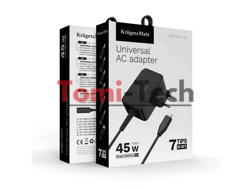 Univerzálny napájací zdroj Kruger&Matz 45W s funkciou Power Delivery, 7 koncoviek