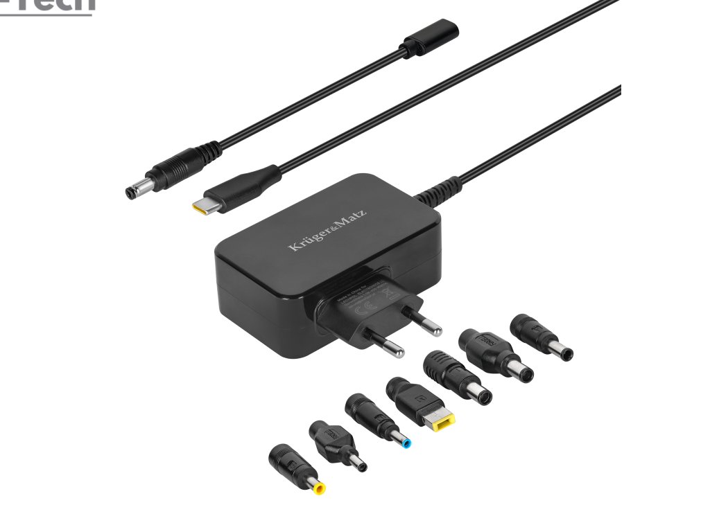 Univerzálny napájací adaptér Kruger&Matz pre notebook je perfektným riešením pre domácnosť, kanceláriu a cesty. Je perfektný, ak sa vám pokazí pôvodný napájací adaptér, stratí sa alebo potrebujete jedno zariadenie pre viacero notebookov. Vďaka vymeniteľným koncovkám a konektorom USB-C môžete nabíjať viacero modelov počítačov a iných mobilných zariadení. pohodlne a bezpečne.