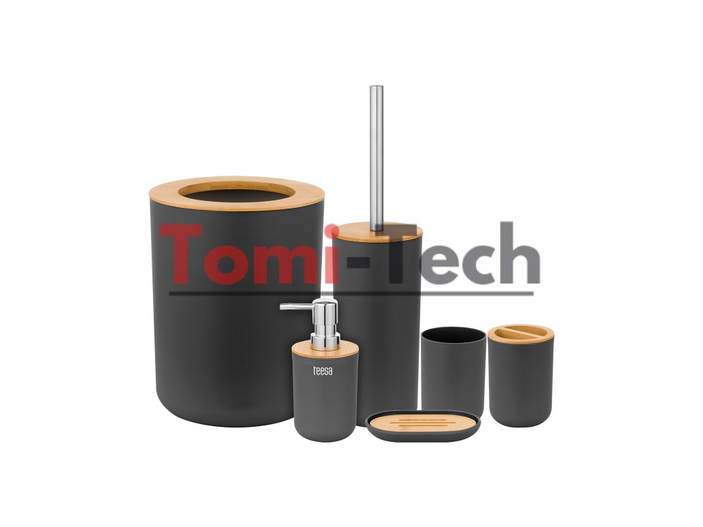 Obsahuje kúpeľňové doplnky ako misku na mydlo, dávkovač mydla, hrnček, držiak na zubnú kefku, toaletnú kefu a odpadkový kôš. Všetky kúpeľňové doplnky sú vyrobené z vysoko kvalitného plastu s prídavkom bambusového dreva.