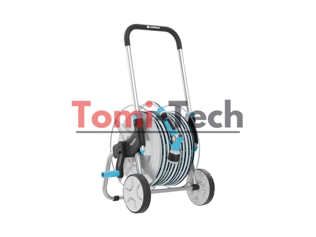 - Dizajn vozíka umožňuje pohodlnú prepravu a skladovanie dlhých úsekov hadice.