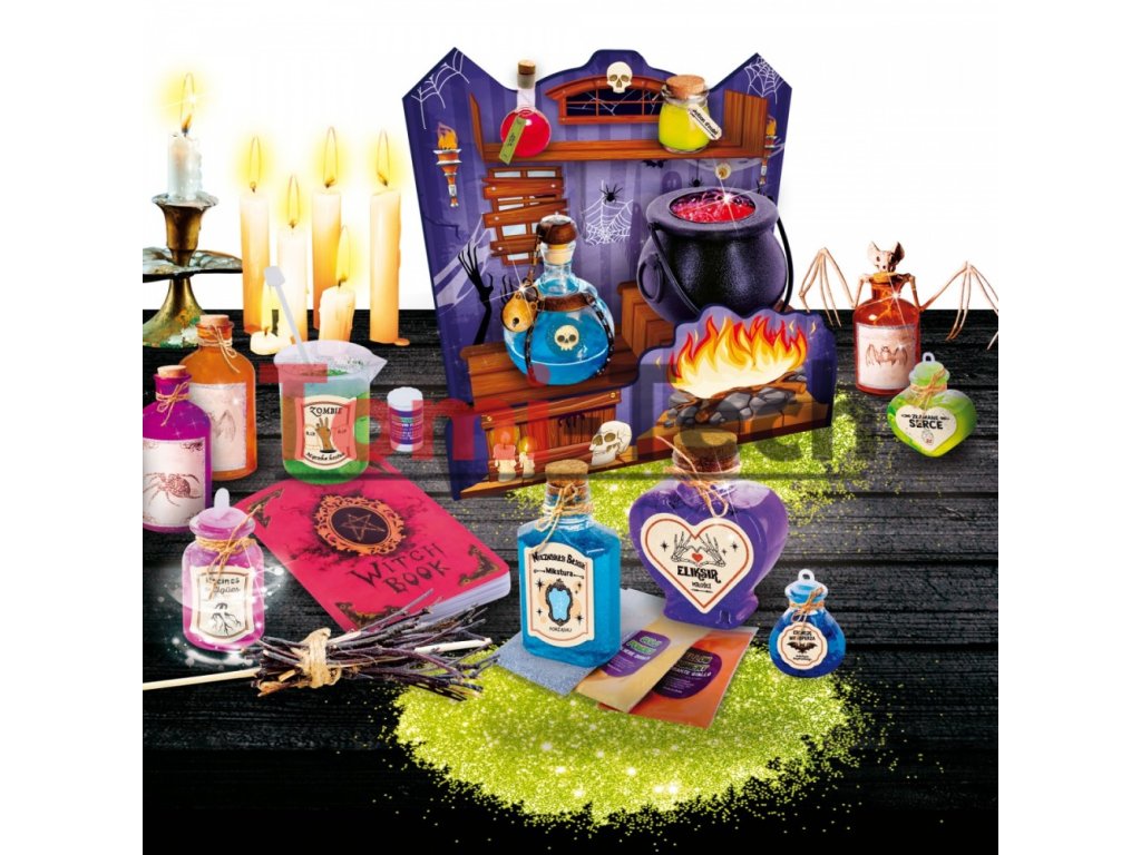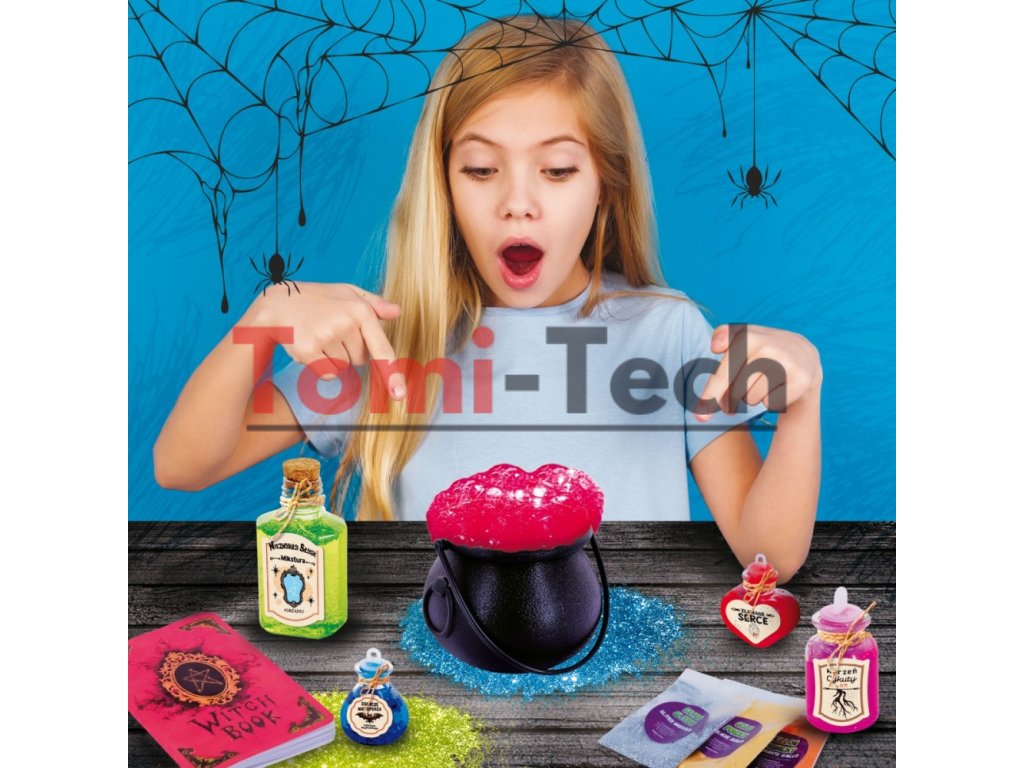 Magická súprava na vykonávanie experimentov ako skutočná čarodejnica v skutočne strašidelnom kotli! Vytvárajte kúzla a rôzne elixíry: svietiace v tme, trblietavé... a oveľa viac! Hrdinom tejto súpravy, rovnako ako ostatných zo série Crazy Science, je Cillo, najpriateľskejšia baktéria na svete, ktorá deti krok za krokom sprevádza bláznivými laboratóriami. Všetky experimenty sú krok za krokom opísané zábavným spôsobom, aby boli ľahšie dostupné.