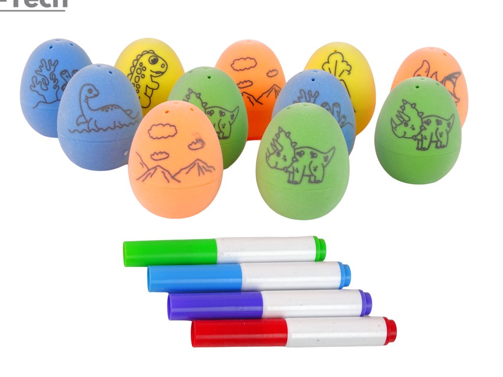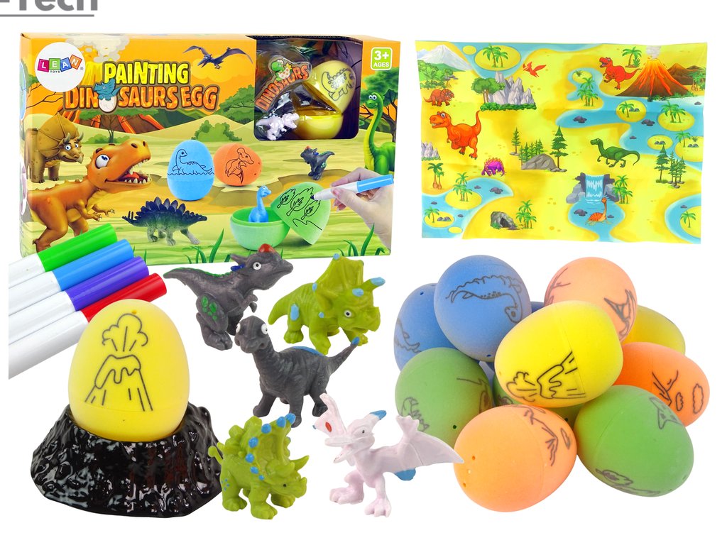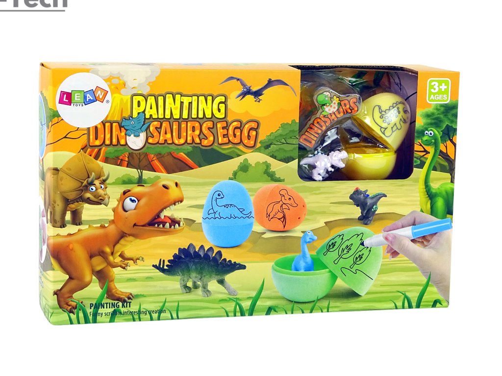 Sada obsahuje veľa vajíčok na maľovanie, vďaka čomu je táto hračka ideálna na hranie s rovesníkmi a rodinou! Sada obsahuje aj figúrky dinosaurov, ktoré sa dajú umiestniť do krásne namaľovaných vajíčok! Nečakajte, nechajte svoju fantáziu a kreativitu plynúť spolu s vaším dieťaťom a začnite spolu maľovať dinosaurie vajíčka!