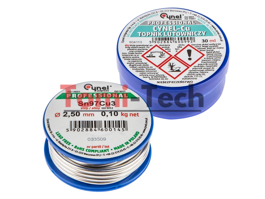 Sada na spájkovanie medených inštalácií, spájka a tavidlo, cínová spájka 97% Sn, 3% Cu, 2,5 mm, 100 g, tavidlo 100 gDodatočné parametre