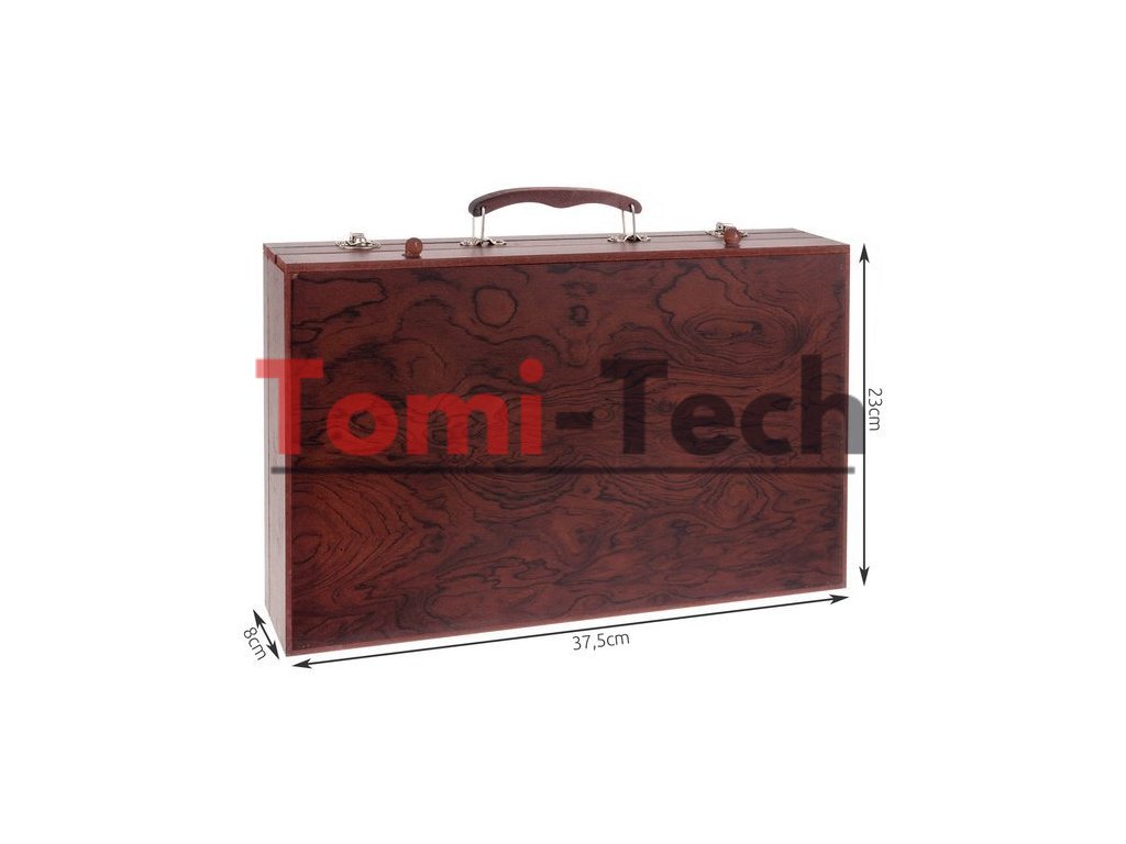 - PRAKTICKÝ KUFRÍK SO ZÁSUVKOU? Sada na kreslenie pre deti má praktický drevený kufrík, ktorý je vybavený uzáverom a rukoväťou. Vďaka tomu je preprava obsahu kufra pohodlná a veľmi jednoduchá.