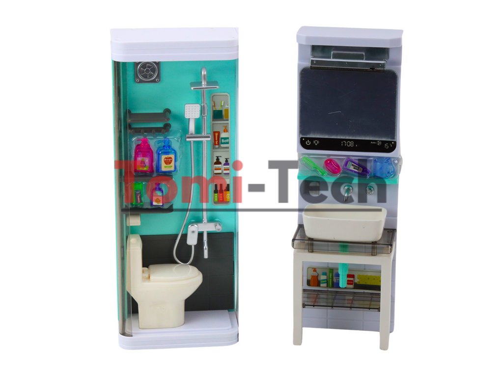 Kúpeľňová herná súprava 4 v 1: Sprcha, WC, práčka, príslušenstvo